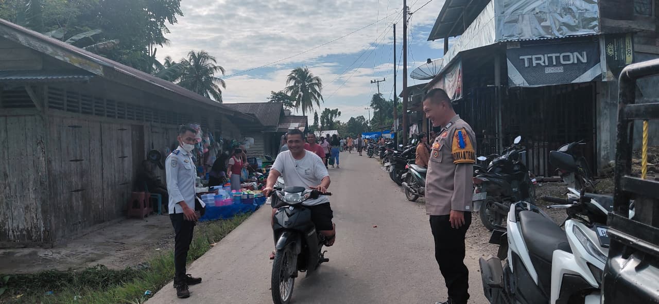 Jaga Keramaian Pasar, Bhabinkamtibmas Polsek Lahewa Laksanakan Patroli Dialogis di Pekan Idanondrawa
